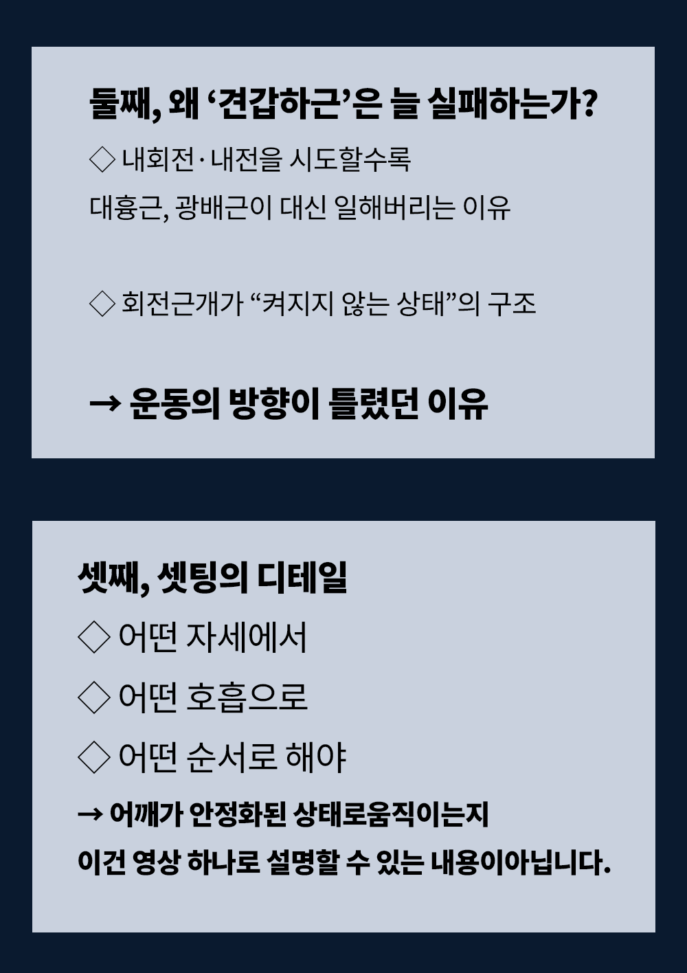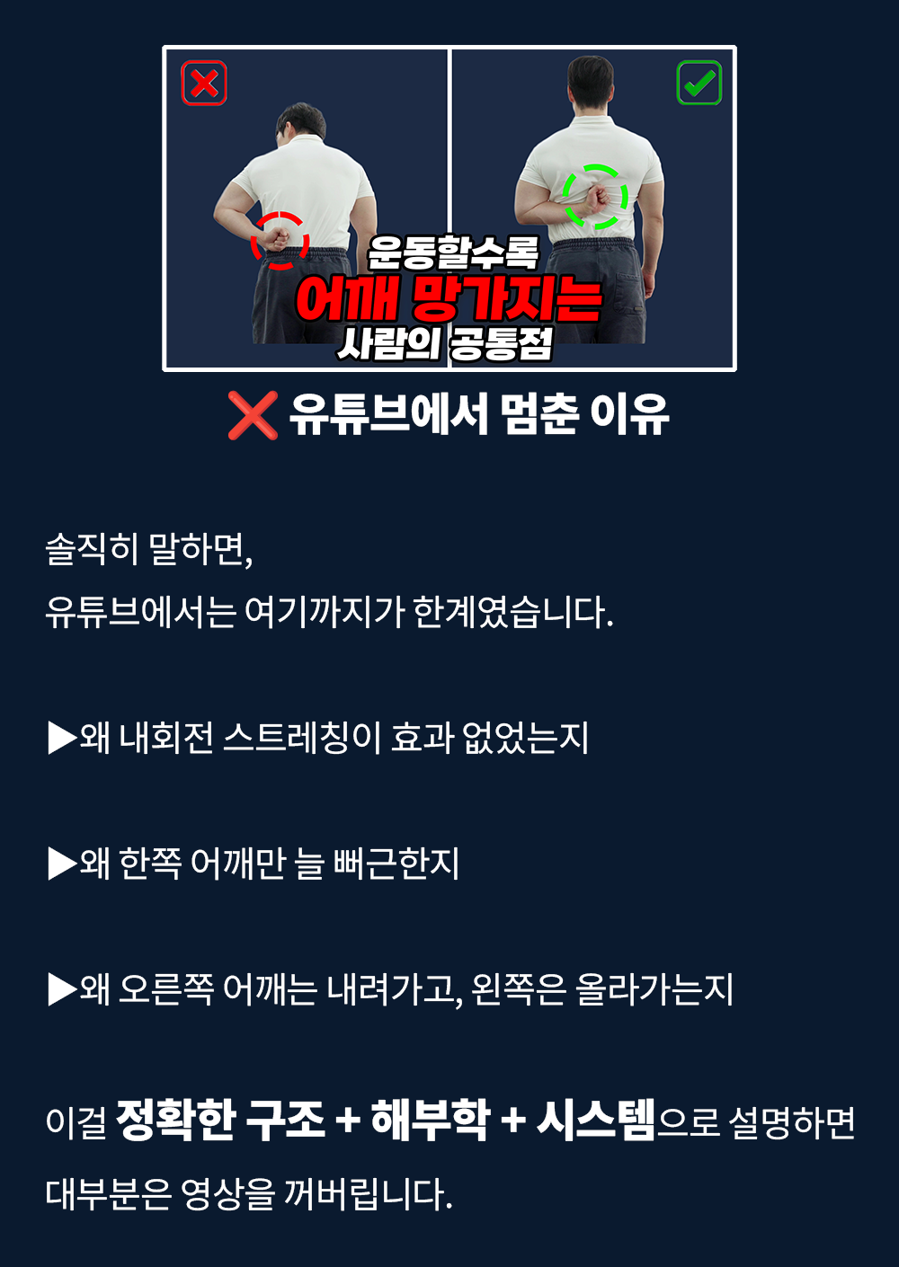 고강도 운동을 하게 된 이후 부터 어깨 문제가 고질적으로 생겨 운동의 질이 현저히 낮아져 있는 상태 였습니다.